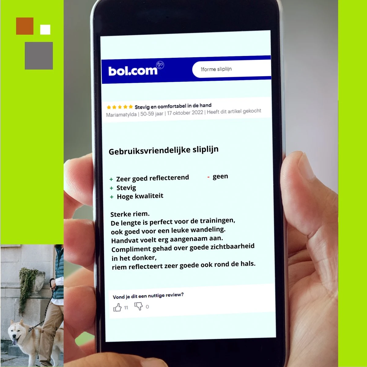 1FORME Hondenriem 15-30kg – Sliplijn Hond REFLECTEREND 2m, Ø 1.2cm – Jachtlijn 2 Ergonomische Handvaten – Dubbel Stop