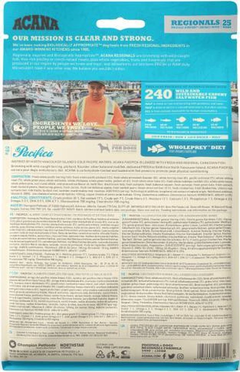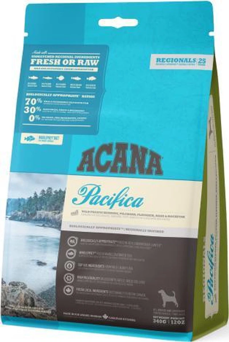 AcanaPacifica is rijk aan wildgevangen vis, sardines, heilbot, kabeljauw en roodbaars. Dit is vers of rauw geleverd uit de regio bij Acana’s gecertificeerde keuken in Canada. Voeding van Acanais gemaakt om op een natuurlijke manier te voeden, is koolhydraatarm en met een absoluut minimum aan toevoegingsmiddelen. Rijk aan hoogwaardige eiwitten uit vis, zodat jouw hond een topconditie heeft!