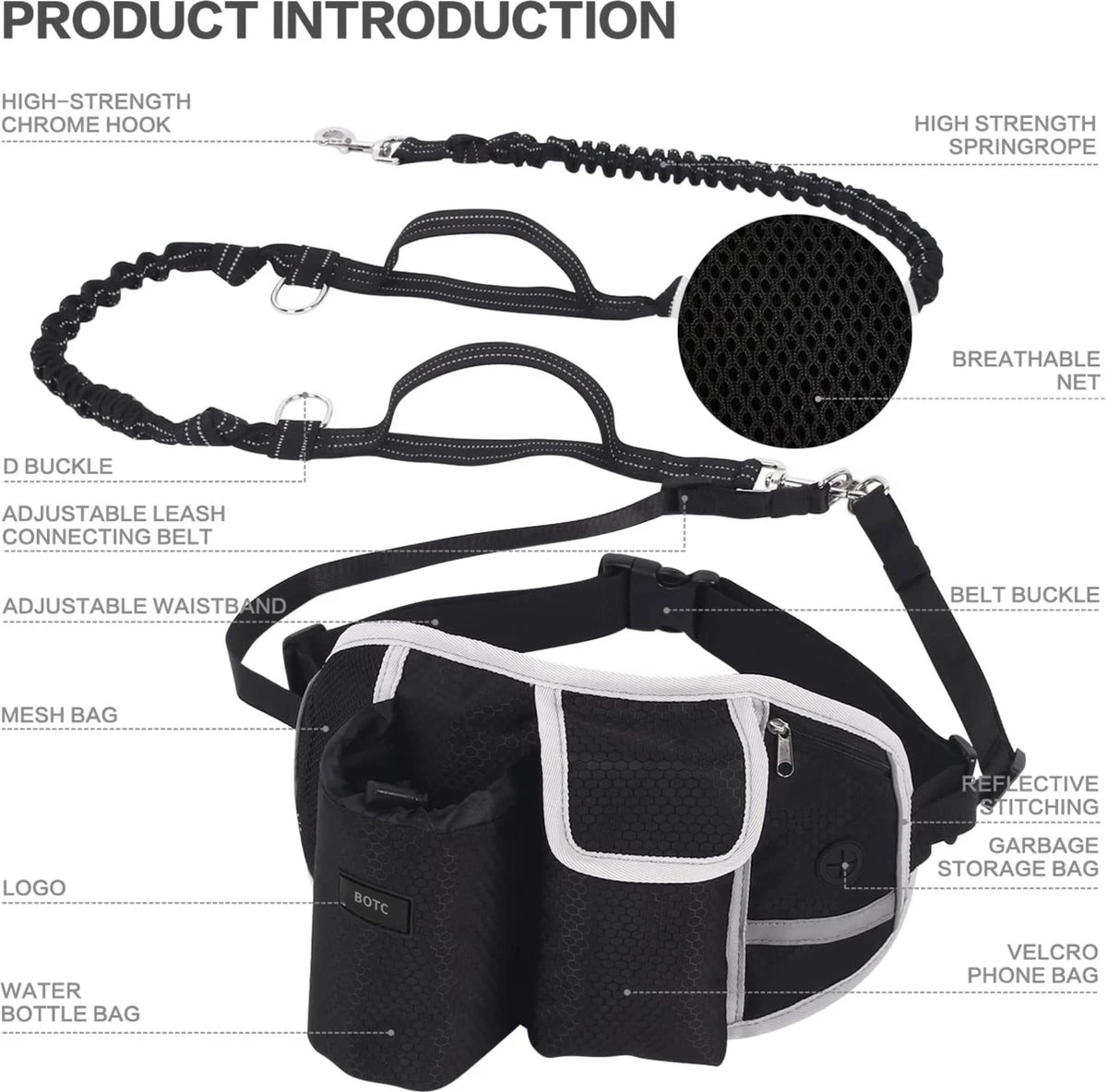 BOTC Looplijn Hond Met Heupriem Voor Hardlopen – Hondenriem – Zwart