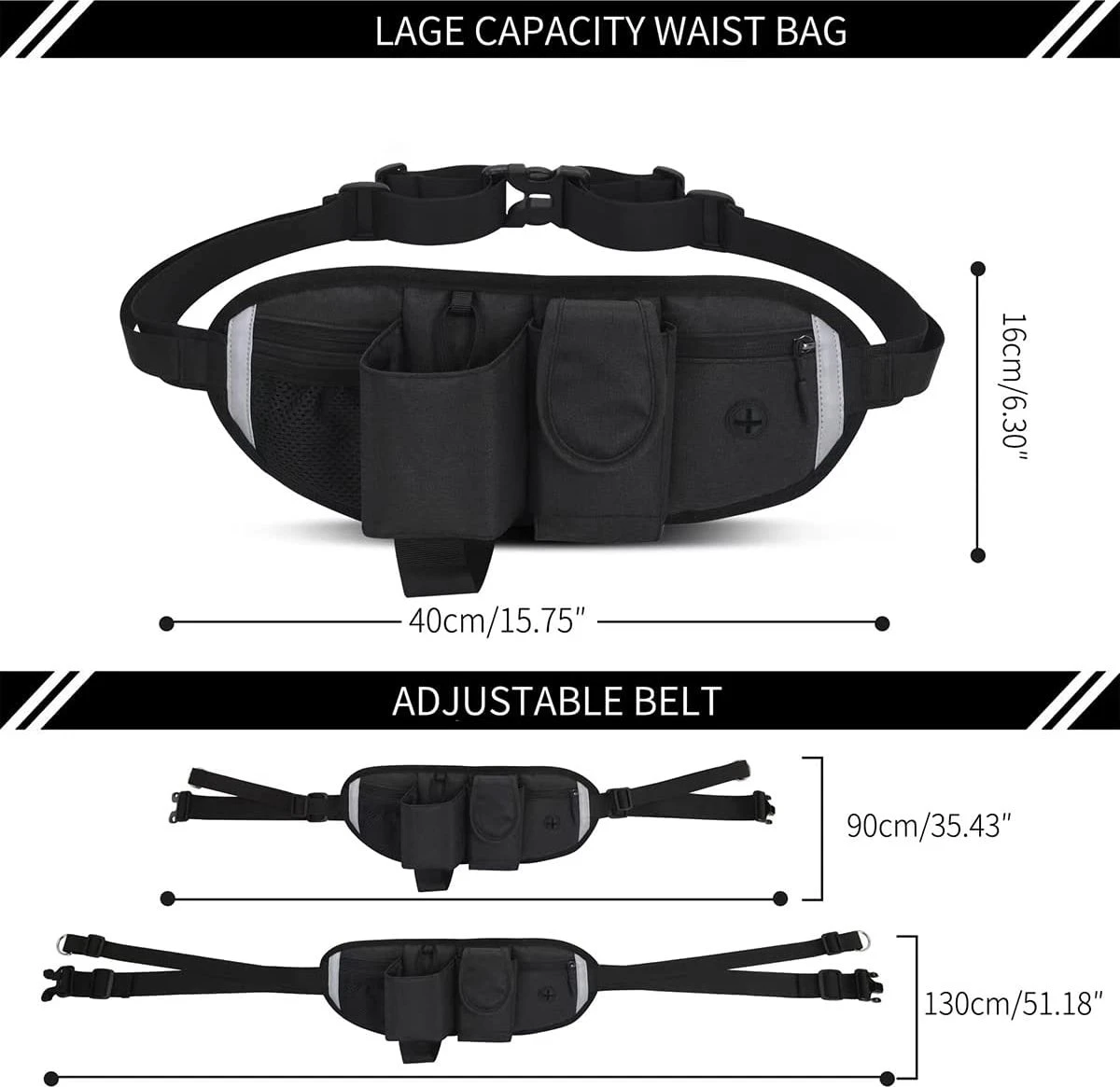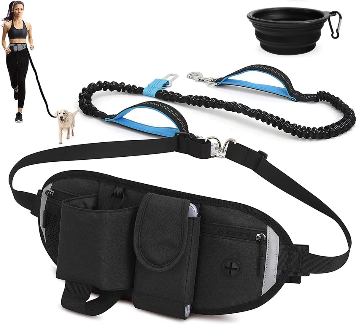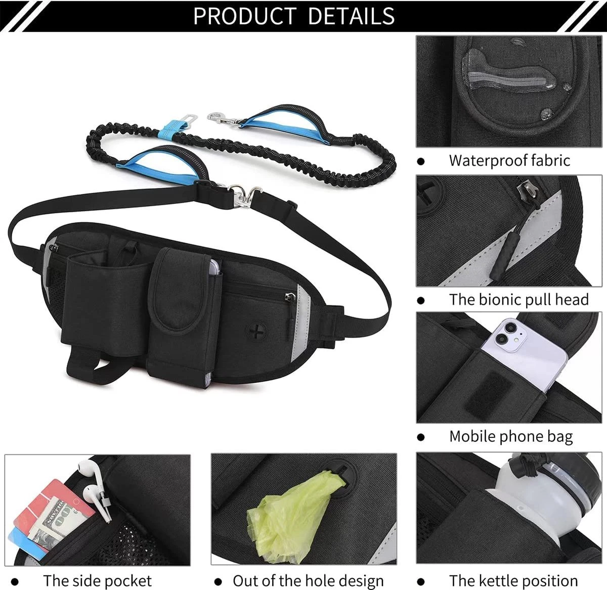 BOTC Looplijn Hond Met Heupriem Voor Hardlopen – Met Drinkbak Hond – Hondenriem – 1 Roll Poep Zakjes – Zwart