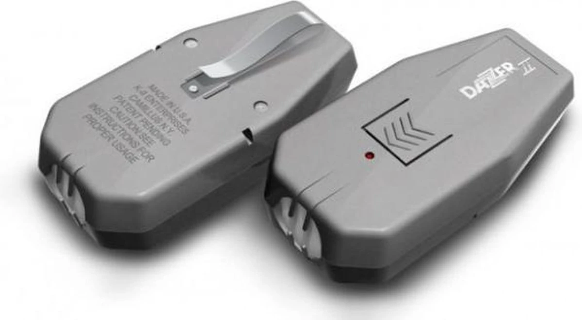 Eindelijk heeft iemand iets uitgevonden wat goed werkt, maar je het er wel een dosis moed voor nodig en je haren gaan nog altijd overeind staan. De DAZER werkt met een ultrasoon geluid, een piep die wij niet kunnen horen, maar honden wel. En hoe: ze zijn er niet bepaald gelukkig mee. Er zit een grote knop op dit apparaat en bij licht indrukken produceert de DAZER zo’n piep dat de hond met de staart tussen de benen afdruipt.