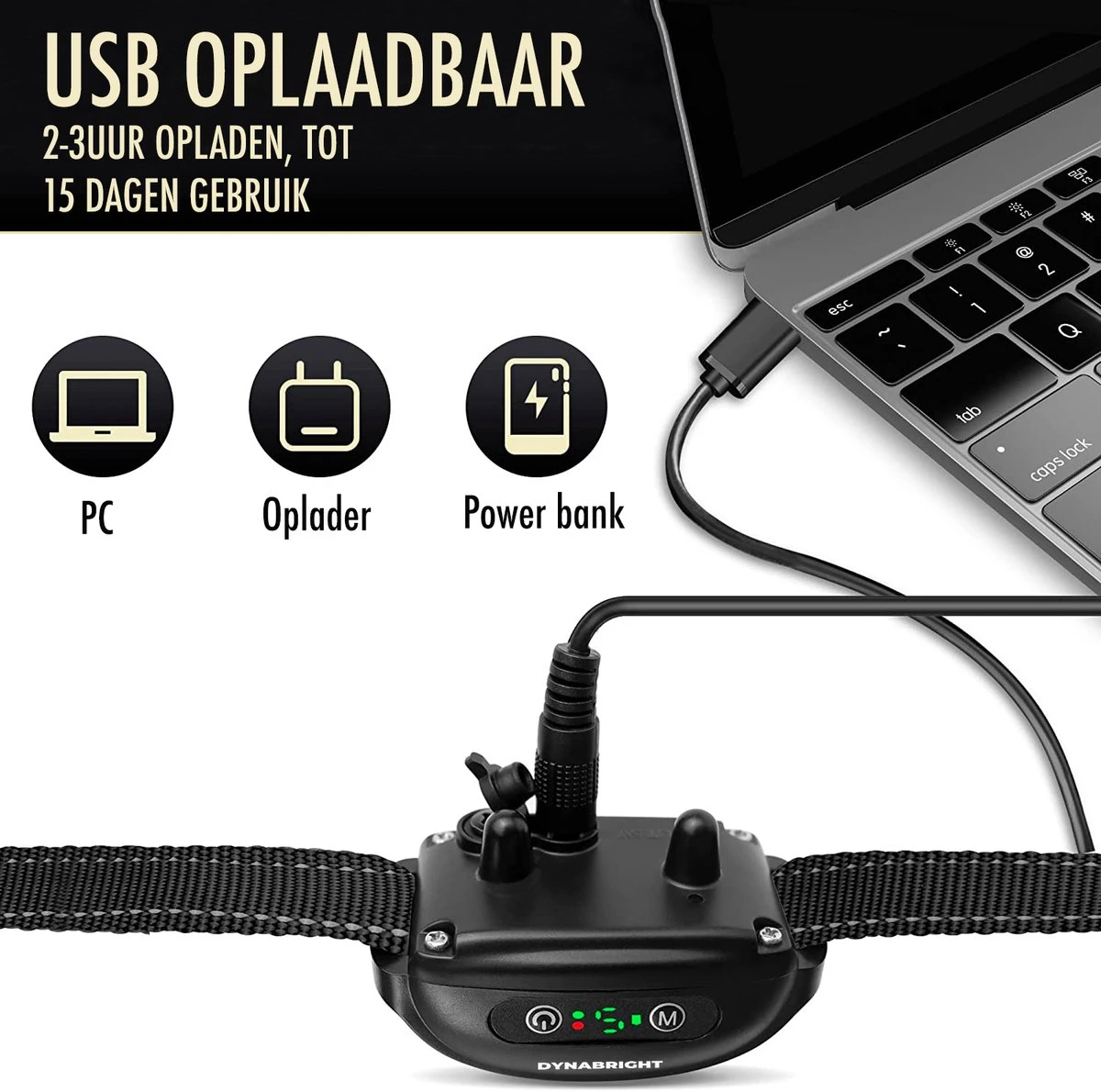 Vertoont je hond ongewenst gedrag? De DynaBright anti-blafband biedt de oplossing! Met behulp van deze intelligente trainingshalsband zonder schok leer je jouw viervoeter op een diervriendelijke manier onnodig blaffen en ongewenst gedrag af. Dankzij pieptonen en vibraties corrigeert de halsband het gedrag van je hond op een pijnloze en humane manier.