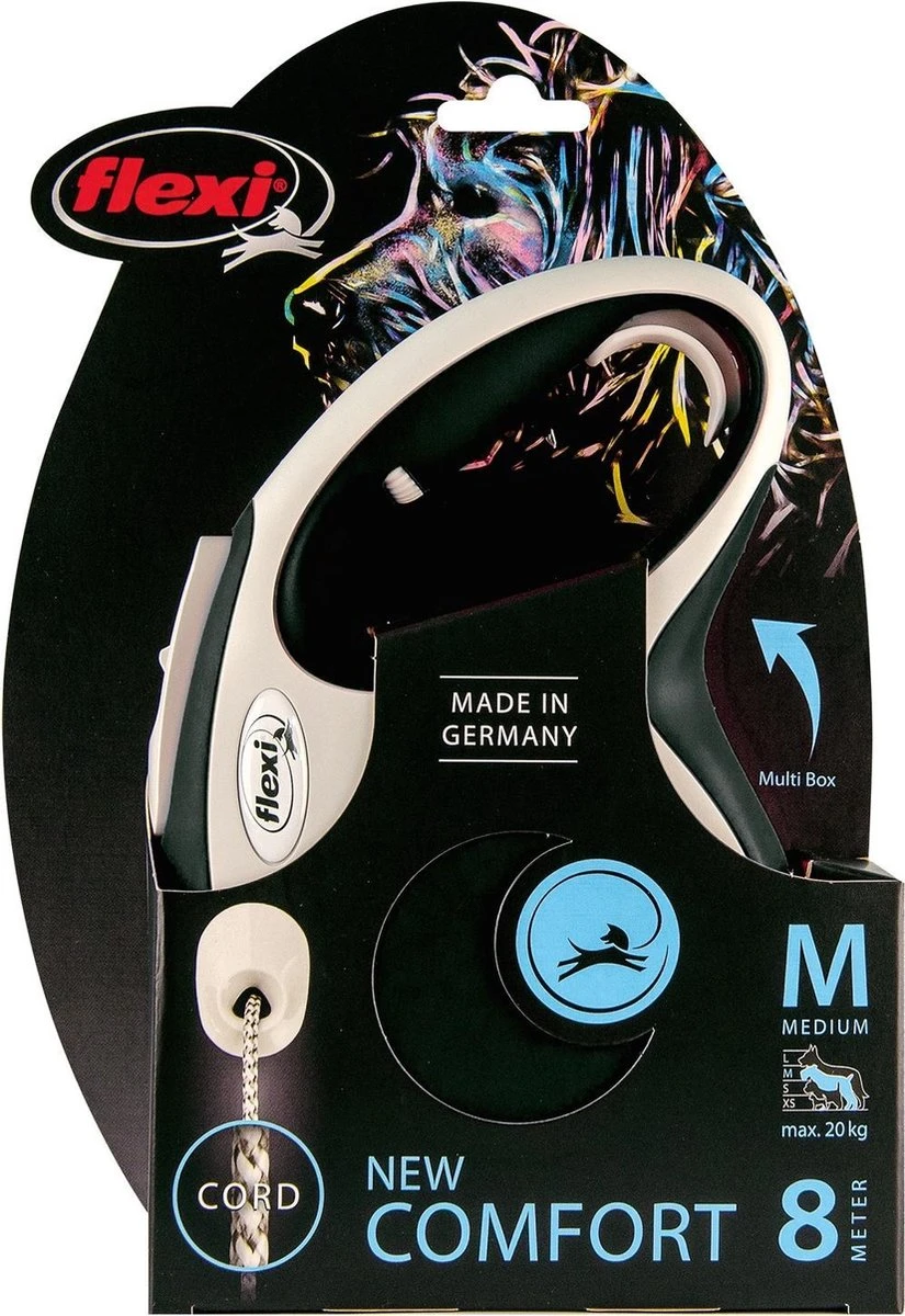 Flexi Rollijn New Comfort Koord M Zwart&Lichtgrijs – Hondenriem – 8 M
