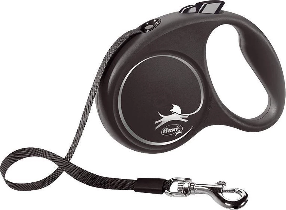 Hondenriem – Looplijn – FLEXI Rollijn BLACK DESIGN TAPE – S – ZWART – 5 Meter