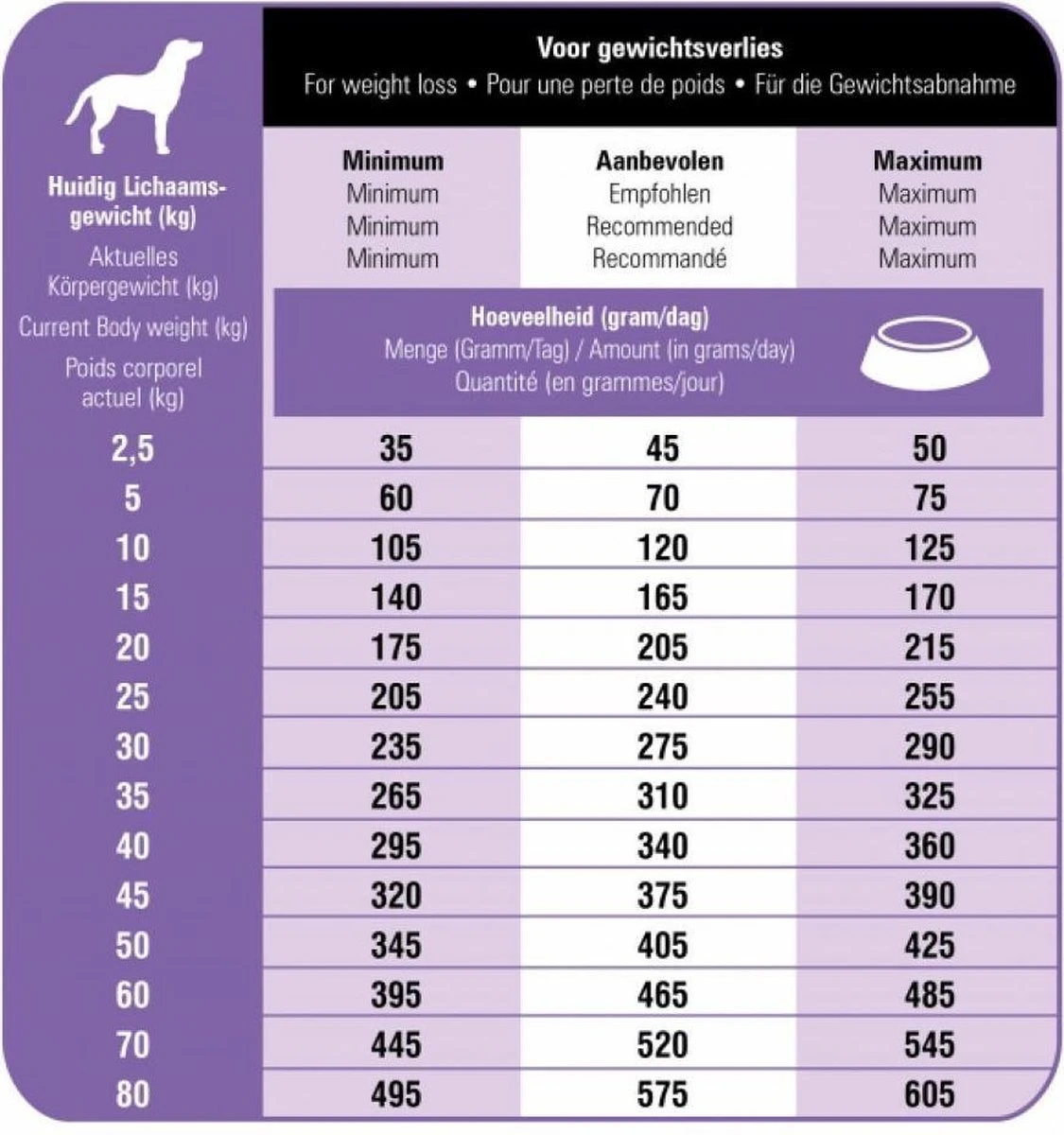 ProCare light is een hoogwaardige voeding geschikt voor honden met overgewicht die verantwoord moeten afvallen. Een laag vet en energiegehalte zorgen ervoor dat je hond weer het gewenste gewicht bereikt. Het verhoogde vezelgehalte vermindert het gevoel van honger tussen de maaltijden door. De toevoeging van L-carnitine zorgt voor een optimale vetverbranding. Alle noodzakelijke voedingselementen zijn in de juiste verhoudingen aanwezig om de hond in optimale conditie te houden tijdens de afvalperiode. ProCare light wordt gevoerd op streefgewicht, dit is de dagelijkse portie die vermeld staat bij het gewicht dat de hond moet gaan wegen. Tijdens het afvallen mag de hond beslist niet worden bijgevoerd. Als het gewenste gewicht bereikt is, kun je overgaan op een passende voeding binnen het ProCare assortiment. ProCare light is bijzonder geschikt voor honden met overgewicht vanaf 18 maanden.