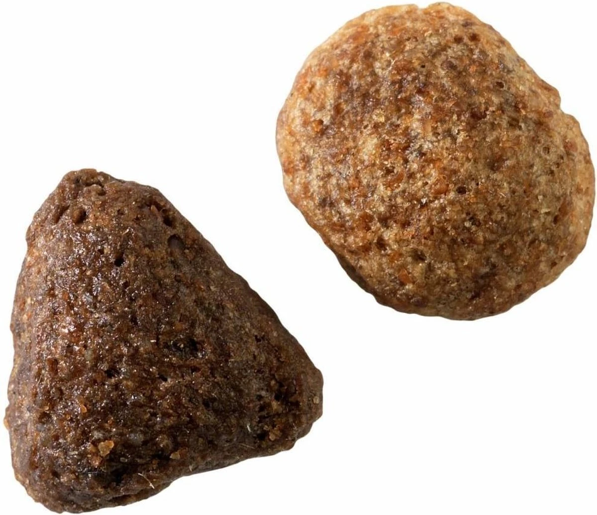 Hoewel het aan de buitenkant soms nog niet zichtbaar is, verandert er veel aan de binnenkant bij een oudere hond. Organen zoals de lever en de nieren gaan minder goed functioneren en de opname van voedingsstoffen door de darmen verloopt minder efficiënt. Oudere honden zijn niet meer zo actief als voorheen, daarom dat deze voeding minder energie bevat maar meer hoogwaardige eiwitten die de verteerbaarheid vergroten. Door de toevoeging van Glucosamine en Chondroitine wordt het behoud van soepele en gezonde gewrichten extra ondersteund. De toevoeging van vitamine E draagt bij aan het gezond ouder worden van uw trouwe vriend.